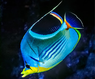 Blue Fish is dropped into a different tank of water. “What? Why am I not dead?” Blue Fish swims around the new tank. He swims towards a reef, where there were a lot of other fish. “Hey, maybe there is food over there,” Blue fish says. As he gets closer, he sees one of the little fish, that wasn’t moving, get scooped up by a little shark. “Never mind,” Blue Fish says, swimming backwards as fast as he can. But then he runs into something hard, and immediately freezes in place. Nothing happens though. Blue Fish moved a little, then froze again. Again nothing happens, so Blue Fish turns around to see weird figures, that were a little bit blurry, staring at him. “What is this thing in front of me? I can not see it, but I can feel it, and why are those things staring at me?”